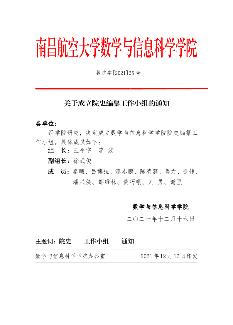 关于成立院史编纂工作小组的通知
