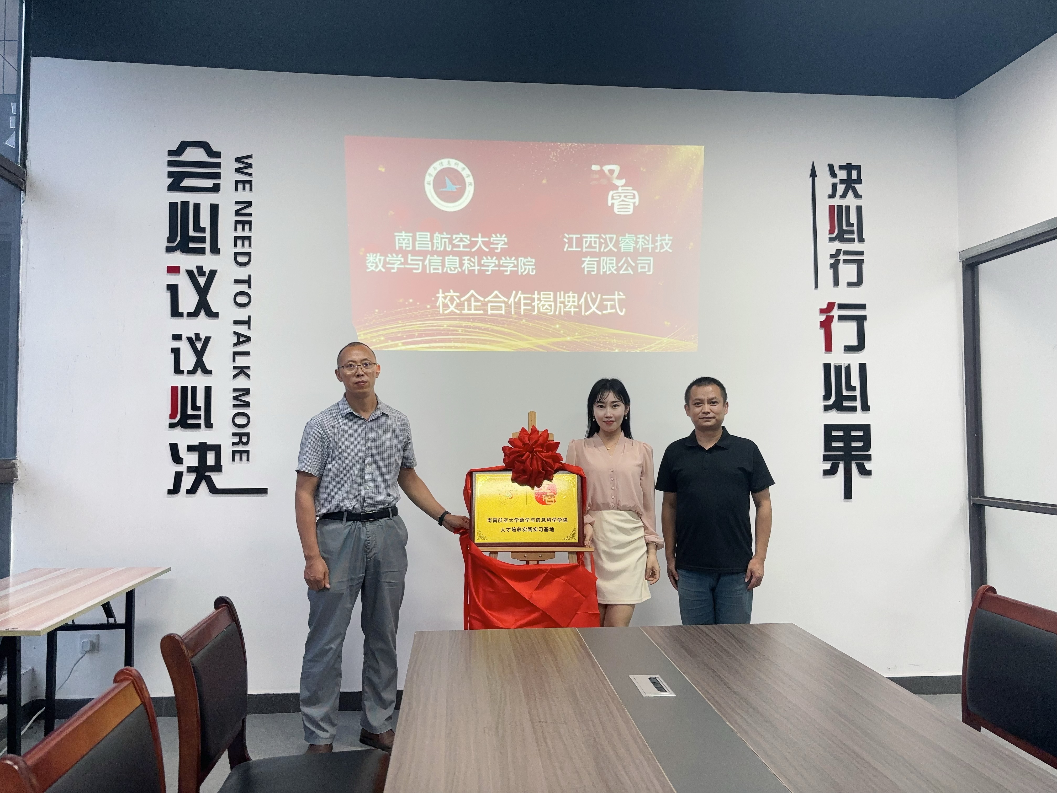 为加强禁漫天堂下载实践实习基地建设,推进学生创新培养模式落地,加强以拓岗为突破点助力毕业生优质就业,禁漫天堂下载与江西汉睿科技有限公司开展了实习基地共建活动。继6月底赴江西汉睿科技有限公司调研交流后,7月2日,双方在汉睿科技有限公司会议室举行实习基地揭牌签约仪式,江西汉睿科技有限公司总经理商广伟、禁漫天堂下载党委副书记兼副院长曹然、数学实验室主任漆志鹏出席活动。