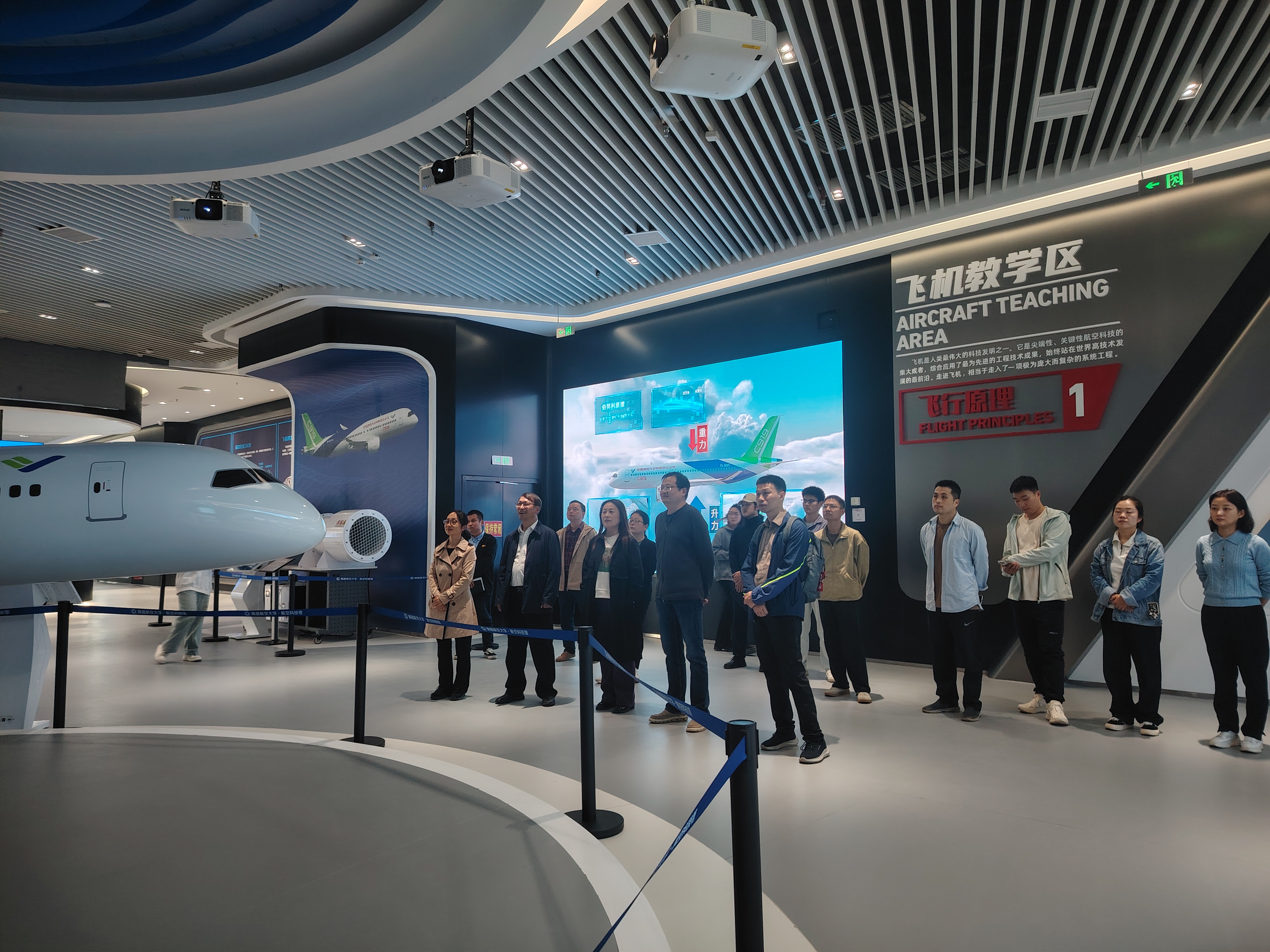 会前,全体与会成员一同参观了学校航空科技馆。在讲解员的引领下,大家依次参观了航空历史区、飞机教学区、航空动力区、民航与民机区、无人驾驶航空器区、江西航空之光区、学校科研创新成果区等七个展区,进行了一次沉浸式的学习体验。馆内丰富的历史文献与实物展示,让大家仿佛置身于我国航空事业波澜壮阔的历史长河之中,了解航空历史,传承航空文化,感受航空成就,领略航空魅力。